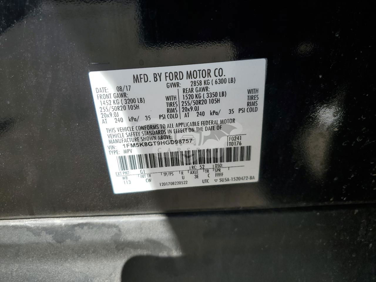 • VIN: 1FM5K8GT9HGD98757