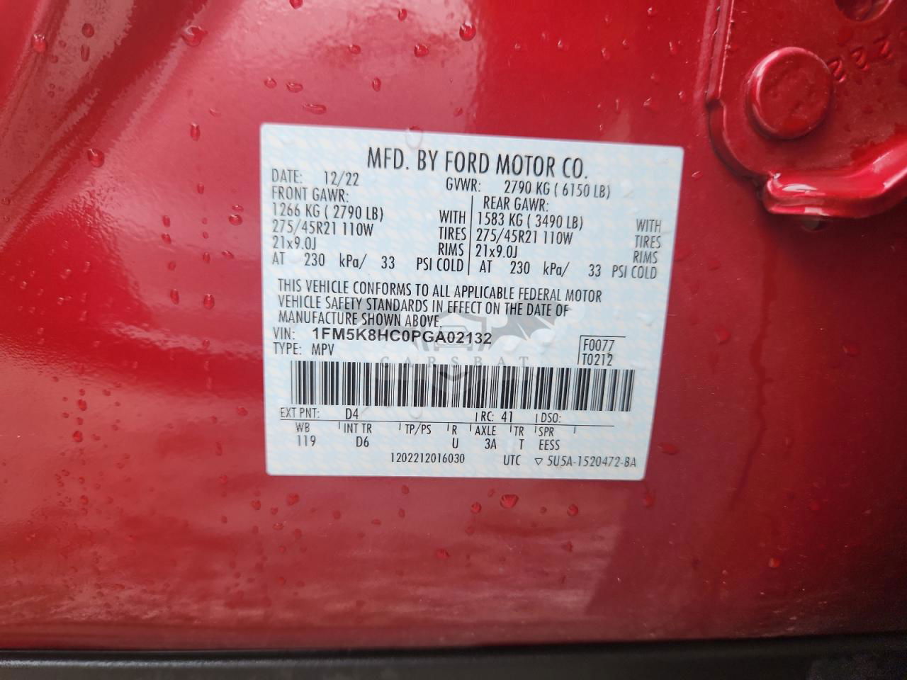 • VIN: 1FM5K8HC0PGA02132
