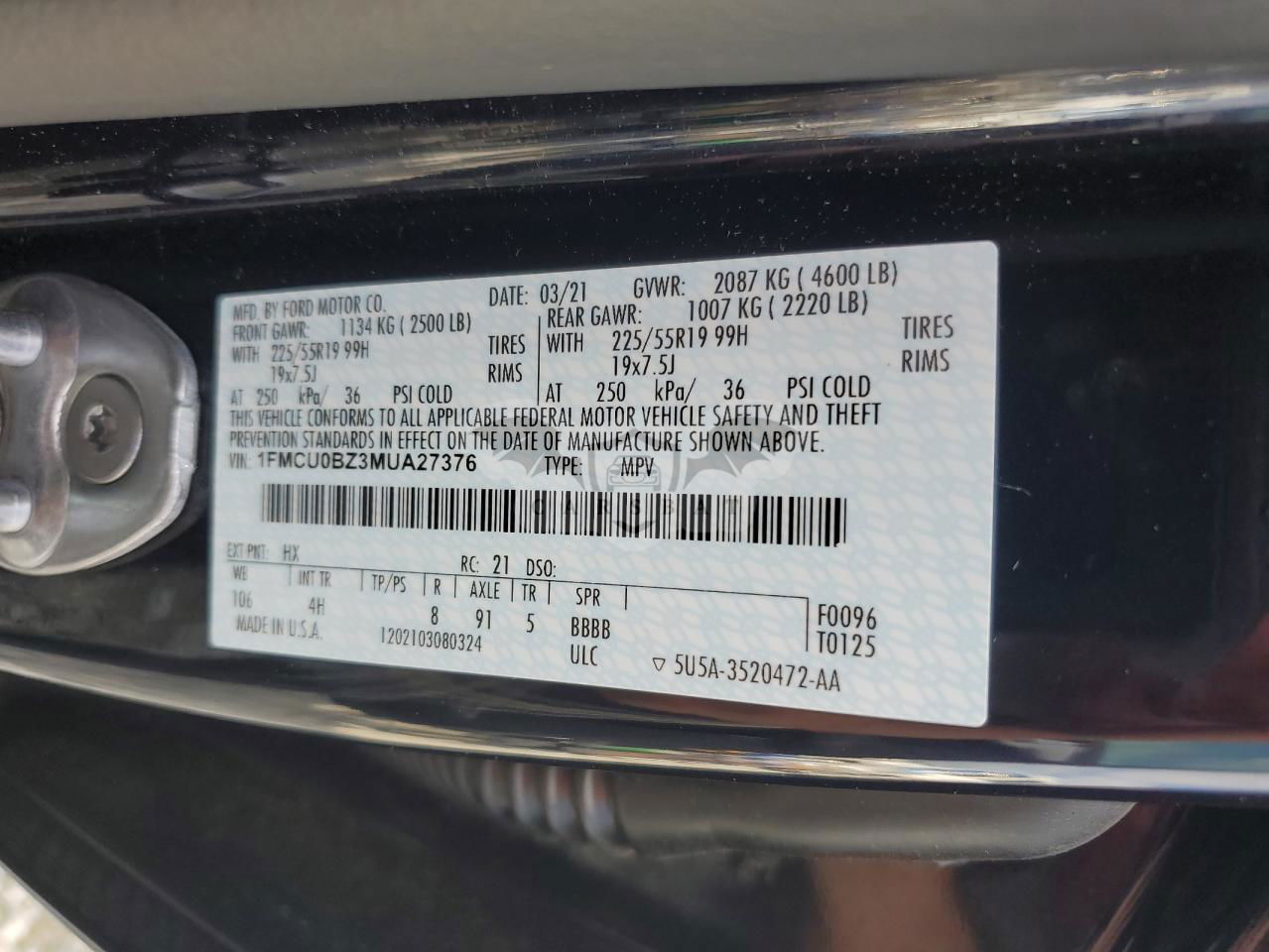 • VIN: 1FMCU0BZ3MUA27376