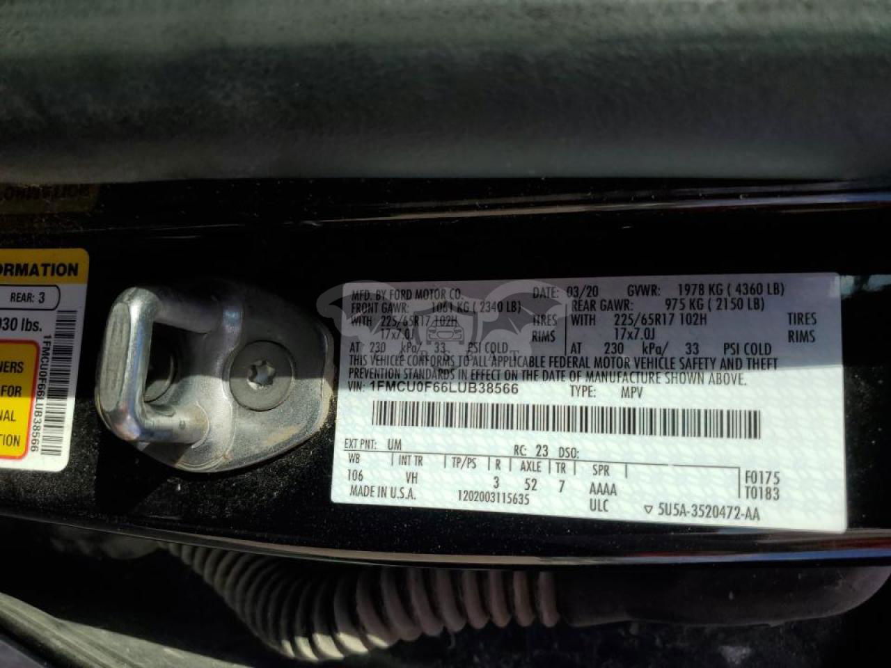 • VIN: 1FMCU0F66LUB38566