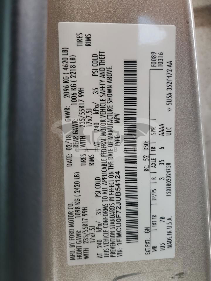 • VIN: 1FMCU0F72JUB54124