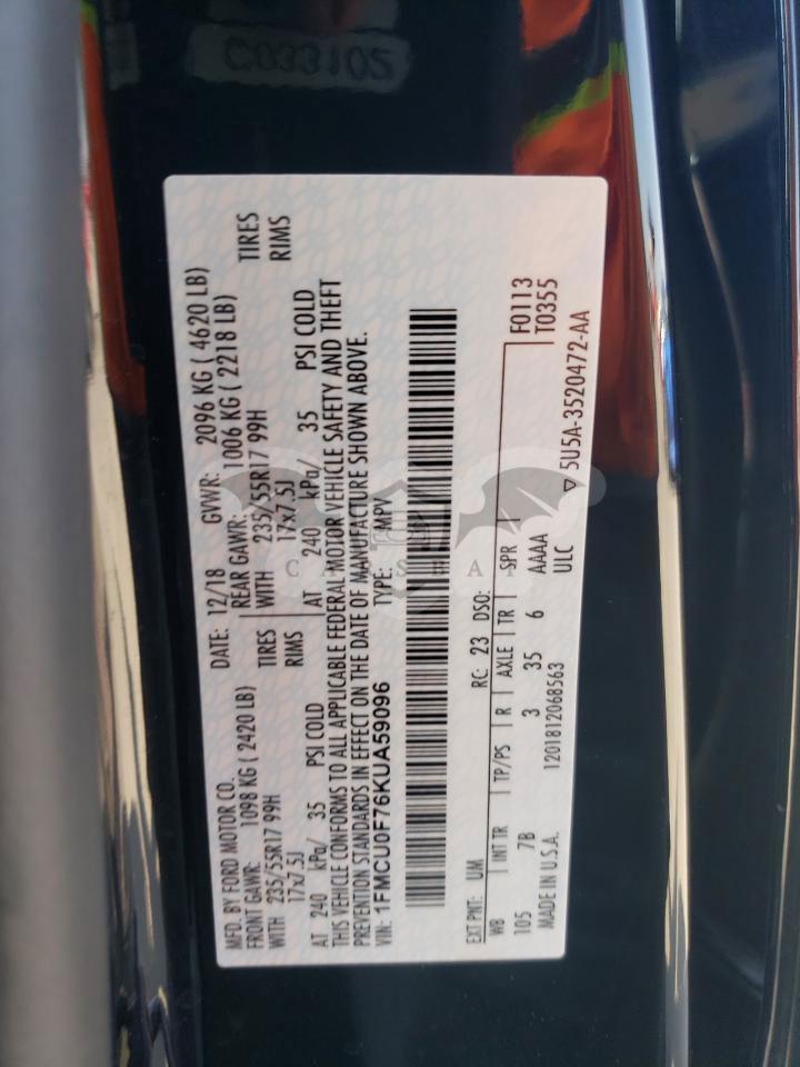 • VIN: 1FMCU0F76KUA59096