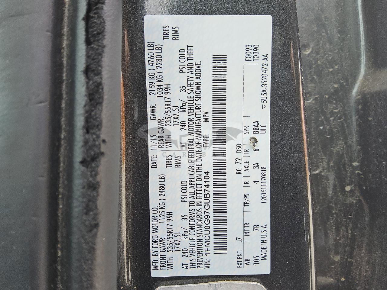 • VIN: 1FMCU0G97GUB74104