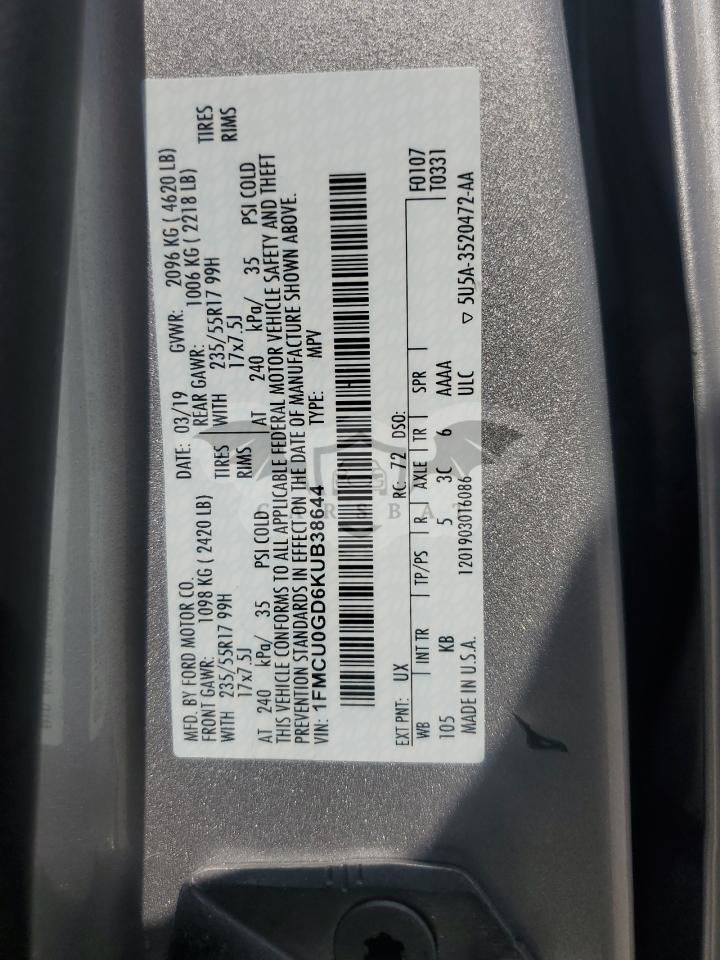 • VIN: 1FMCU0GD6KUB38644