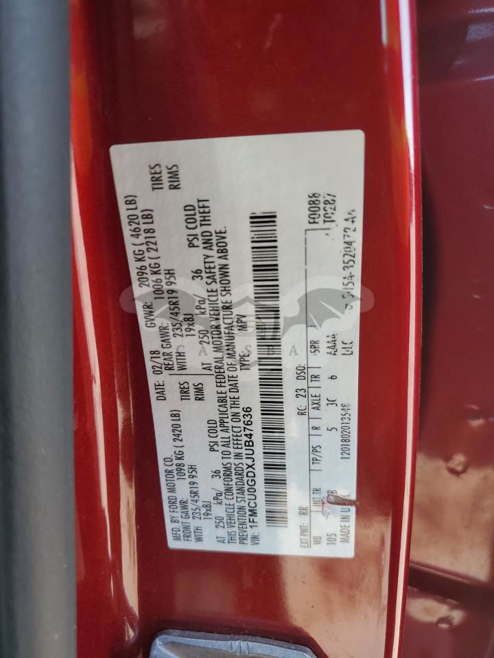 • VIN: 1FMCU0GDXJUB47636