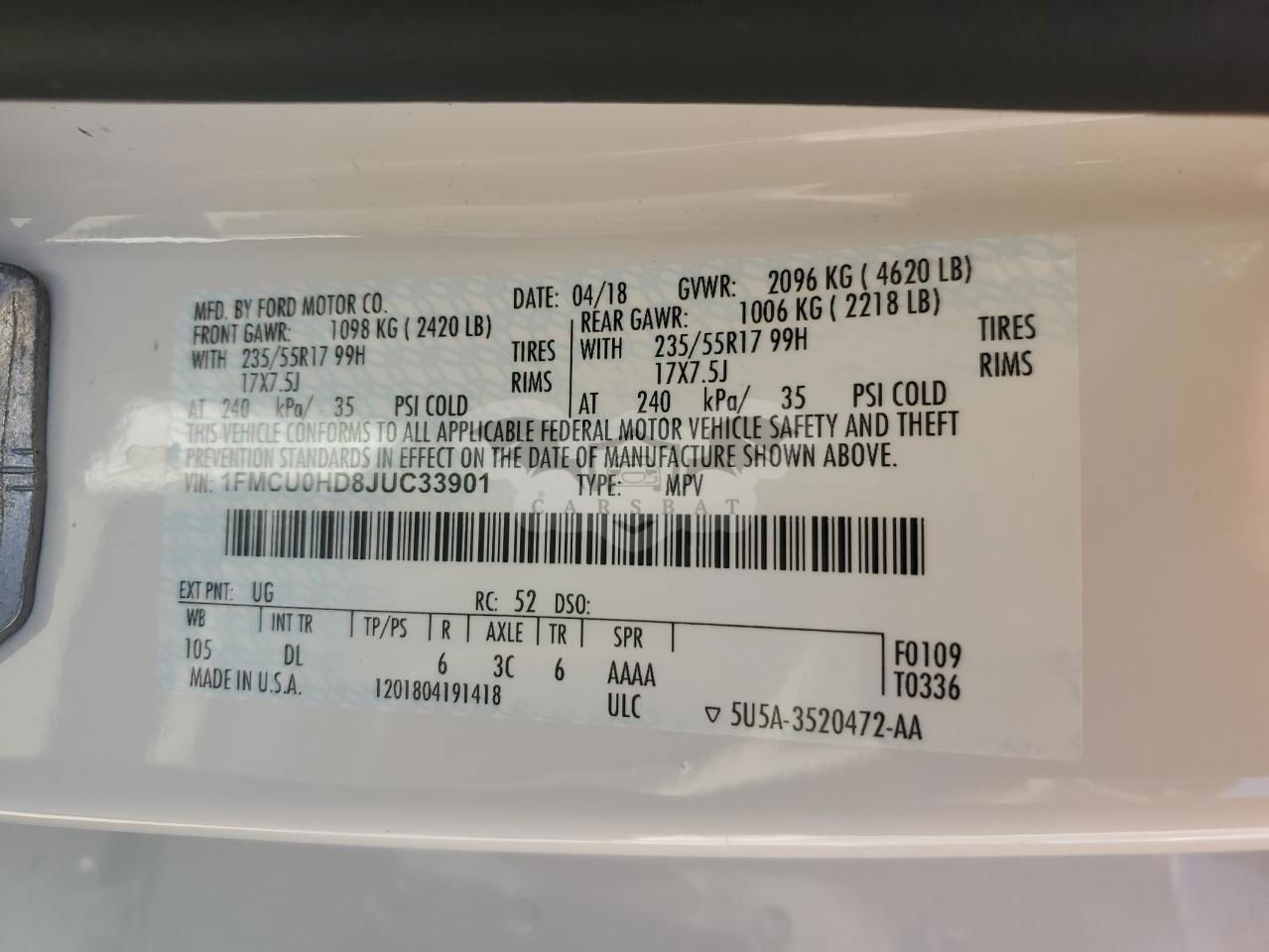 • VIN: 1FMCU0HD8JUC33901