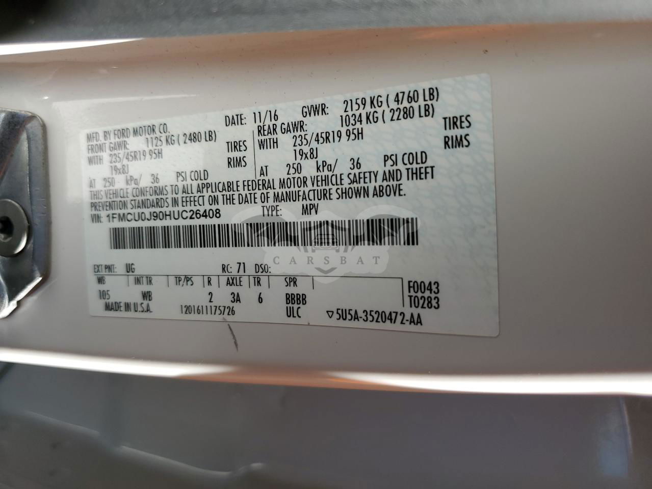 • VIN: 1FMCU0J90HUC26408