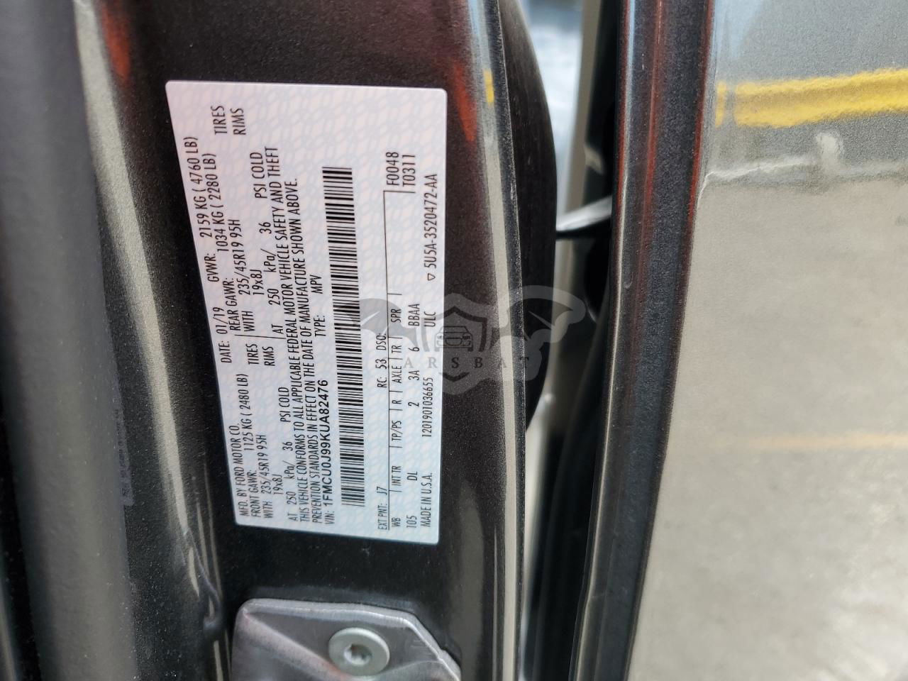 • VIN: 1FMCU0J99KUA82476