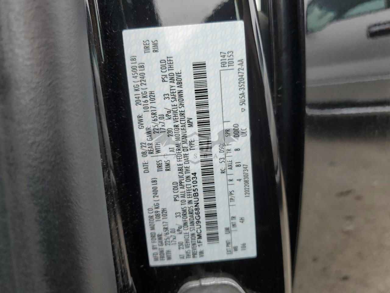 • VIN: 1FMCU9G68NUB51034