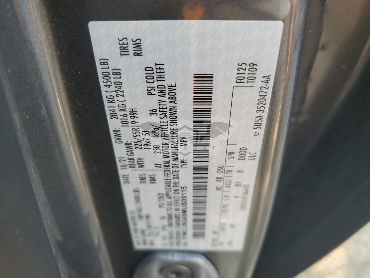 • VIN: 1FMCU9G69MUB09115