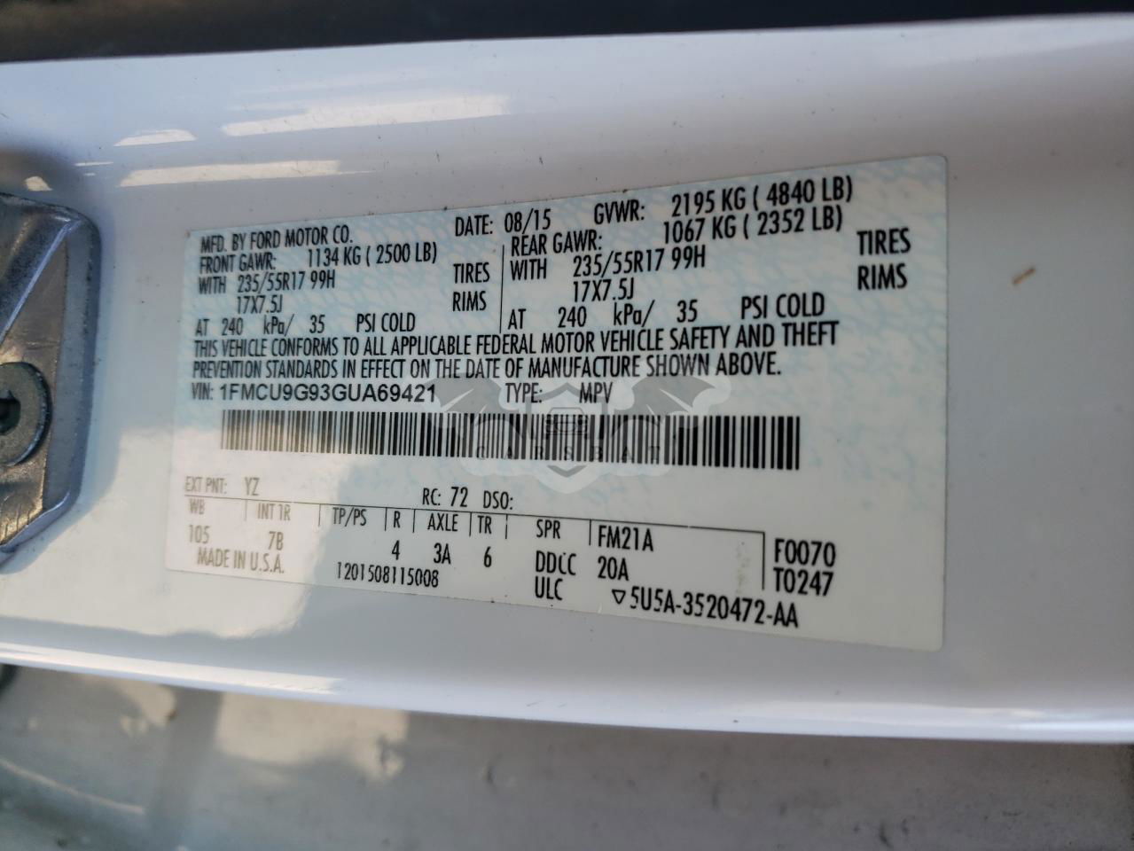• VIN: 1FMCU9G93GUA69421