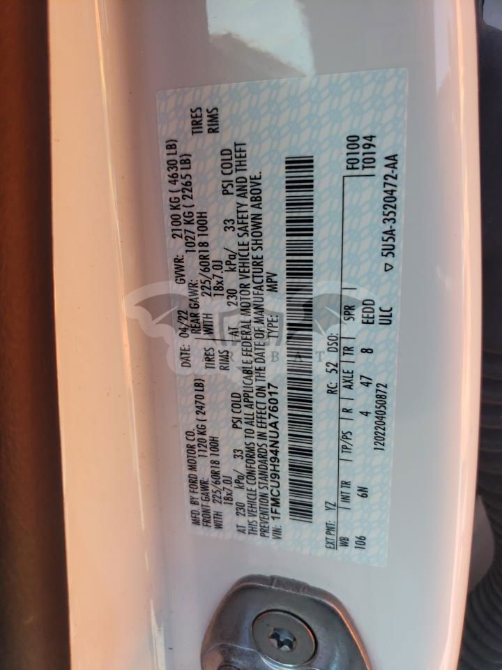 • VIN: 1FMCU9H94NUA76017