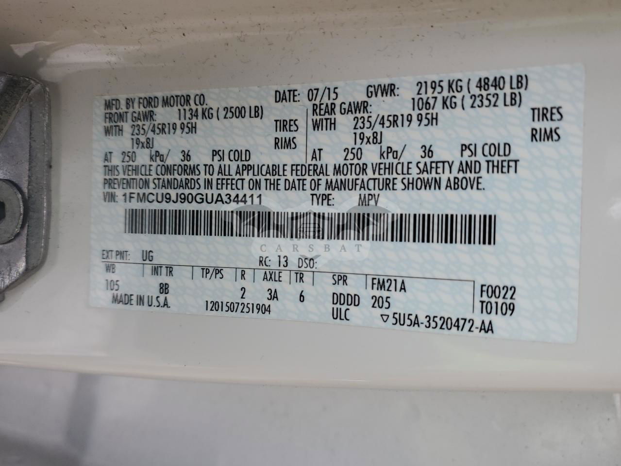 • VIN: 1FMCU9J90GUA34411