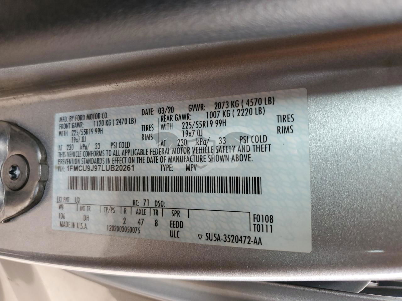 • VIN: 1FMCU9J97LUB20261