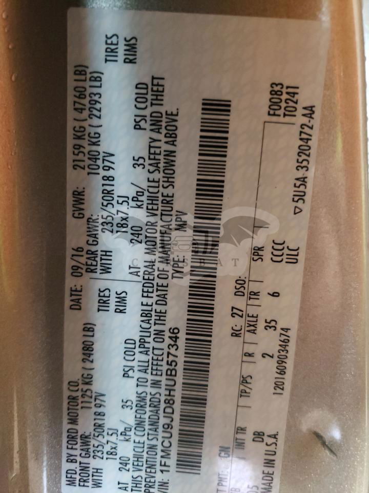 • VIN: 1FMCU9JD8HUB57346