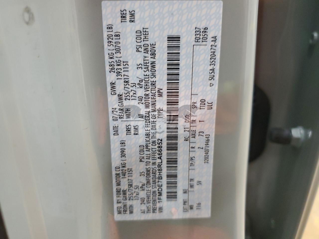 • VIN: 1FMDE7BH8RLA66852