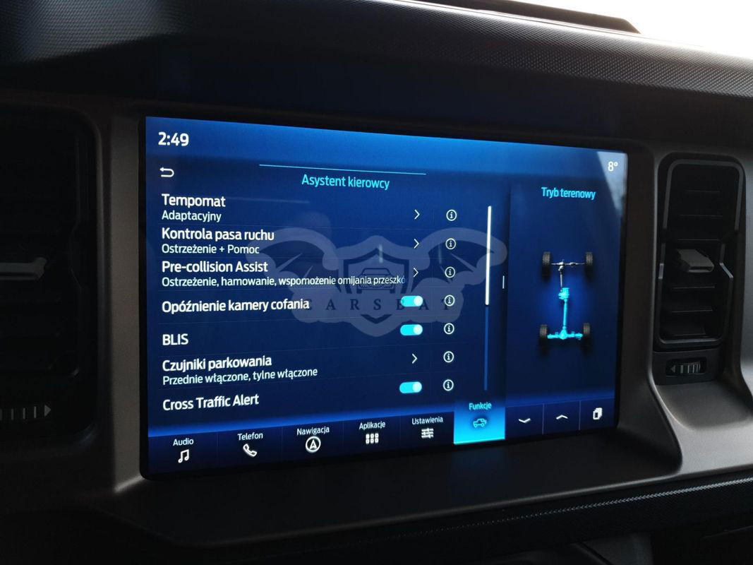 AUTORYZOWANY DEALER FORD MIRAI OFERUJE: FORD BRONCO Wersja wyposażenia: OUTER BANKS Silnik: 2.7 EcoBoost (Benzynowy) 335KM Rok produkcji: 2023 Skrzynia biegów: Automatyczna dołączany napęd AWD Przedmiotem sprzedaży jest Ford Bronco w wersji OUTER BANKS w kolorze Eruption Gren. Samochód napędza dynamiczna jednostka benzynowa o mocy 335KM zestawioną z automatyczną skrzynią biegów oraz napędem na cztery koła. Prezentowany pojazd posiada pełną historie serwisową w ASO, pochodzi od pierwszego właściciela. Na samochód wystawiamy pełną fakturę VAT23%. Możliwość pozostawienia aktualnego pojazdu w rozliczeniu! NAJWAŻNIEJSZE FUNKCJE ZAWIESZENIE I WYPOSAŻENIE TERENOWE • Układ napędu na wszystkie koła z możliwością wyboru trybu podczas jazdy • Terrain Management System™ z możliwością wyboru trybu jednego z 6 trybów G.O.A.T • Zawieszenie HOSS 1.0 (High-Performance Off-Road Stability Suspension) • Przełożenie przekładni głównej 3.73 ZEWNĘTRZNE ELEMENTY WYPOSAŻENIA • 18” obręcze kół ze stopów lekkich, ogumienie A/T 255/70 • 18” koło zapasowe, opona A/T 255/70 • Reflektory – w technologii LED, ze światłami do jazdy dziennej, światłami mijania oraz światłami drogowymi w technologii LED • Stopnie boczne - malowane proszkowo • Górna krata wlotu powietrza - lakierowana na czarno z białym napisem „BRONCO” • Zderzak przedni - z tworzywa, z lakierowanymi obudowami świateł przeciwmgłowych • Zderzak tylny - stalowy, malowany proszkowo • Obudowy lusterek bocznych - w kolorze tworzywa • Osłony nadkoli - lakierowane w kolorze nadwozia ELEMENTY WYPOSAŻENIA WNĘTRZA • System nawigacji satelitarnej Ford SYNC 4 • 12” ekran dotykowy • System nagłośnienia Premium B&O z 10 głośnikami (w tym subwoofer) • Bezprzewodowa obsługa Apple CarPlay i Android Auto • Bezprzewodowa ładowarka do smartfonów • 8”, kolorowy wyświetlacz na tablicy zegarów • Modem FordPass Connect • Kamera 360 stopni • Czujniki parkowania z przodu i z tyłu • Adaptive Cruise Control - tempomat adaptacyjny • Pre-Collision Assist - system wspomagający kierowcę w unikaniu lub zmniejszaniu skutków kolizji z poprzedzającymi pojazdami lub pieszym • Lane Keeping Aid - system wspomagający utrzymanie pojazdu na pasie ruchu • Driver Alert - system monitorowania koncentracji kierowcy F I N A N S O W A N I E | U B E Z P I E C Z E NIE W swojej ofercie posiadamy szeroki wachlarz finansowań. Współpracują z nami największe banki i firmy leasingowe. Kredytujemy samochody bez wkładu własnego Kupującego. Posiadamy korzystny leasing na okres nawet do 84 miesięcy i to od 0% opłaty wstępnej. Uproszczona procedura kredytowa i leasingowa dla wybranych Klientów jest naszym standardem. W ofercie posiadamy finansowania dla nowych firm– już od pierwszego dnia działalności. - - - - - - - - - - - - - - - - - - - - - - - -- - - - - - - - - - - - - - - -- - - - - - - - - - - - - - - - - - - - - - - - G W A R A N C J A Bezpieczeństwo użytkowania samochodu również używanego. Nie musi być nowy, żeby nie obawiać się kosztów napraw ewentualnych usterek. Naprawy wykonane w autoryzowanych stacjach dealerskich danej marki. Bezgotówkowa forma rozliczenia. Ochrona obowiązująca w całej Europie. - - - - - - - - - - - - - - - - - - - - - - - -- - - - - - - - - - - - - - - -- - - - - - - - - - - - - - - - - - - - - - - -- - - - - - - - - - O NAS Szanowni Państwo, Jesteśmy autoryzowanym dealerem i proponujemy kupno samochodu używanego w standardzie dedykowanym dla samochodów nowych wraz z całym pakietem usług około sprzedażowych. Przyjmujemy w rozliczeniu samochody wszystkich marek. Zapraszamy do naszych salonów - - - - - - - - - - - - - - - - - - - - - - - -- - - - - - - - - - - - - - - -- - - - - - - - - - - - - - - - - - - - - - - -- - - - - - - - - * Niniejsze ogłoszenie jest wyłącznie informacją handlową i nie stanowi oferty w myśl Art. 66, § 1 Kodeksu Cywilnego. DEALER MIRAI nie odpowiada za ewentualne błędy lub nieaktualność ogłoszenia.