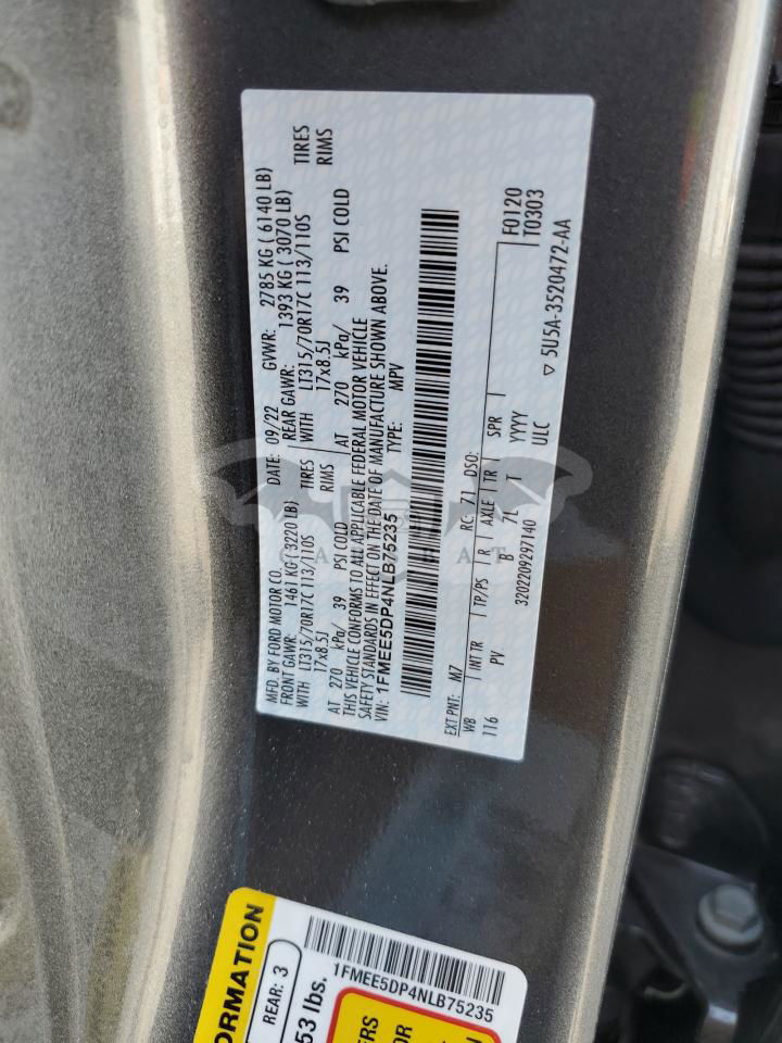 • VIN: 1FMEE5DP4NLB75235