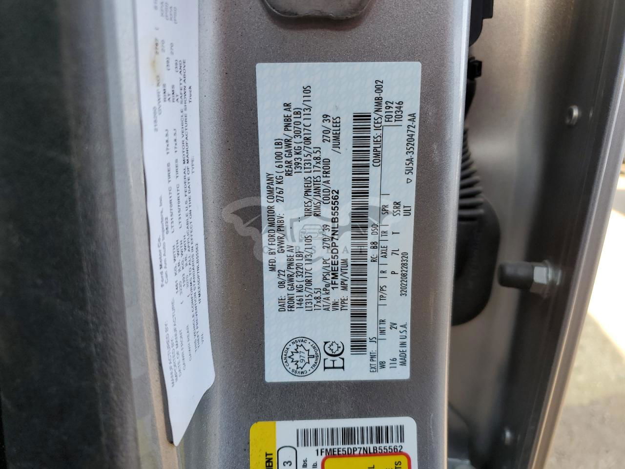 • VIN: 1FMEE5DP7NLB55562