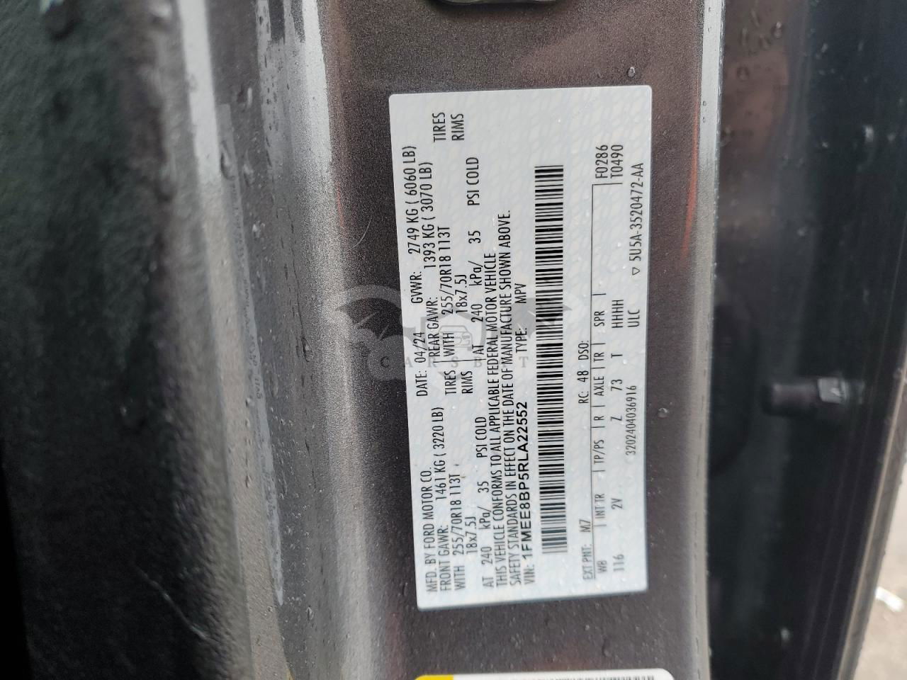 • VIN: 1FMEE8BP5RLA22552