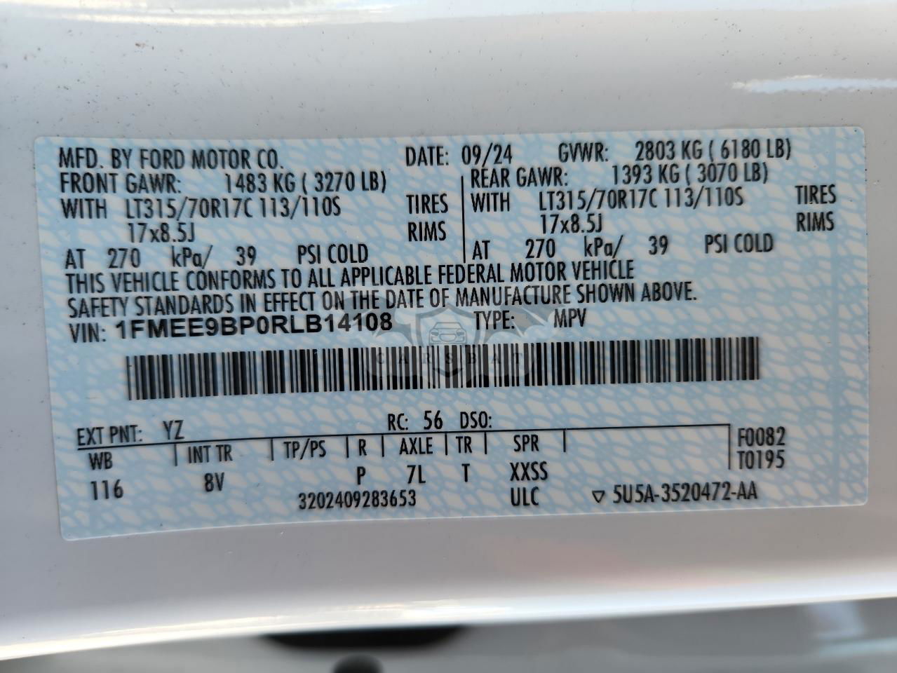 • VIN: 1FMEE9BP0RLB14108