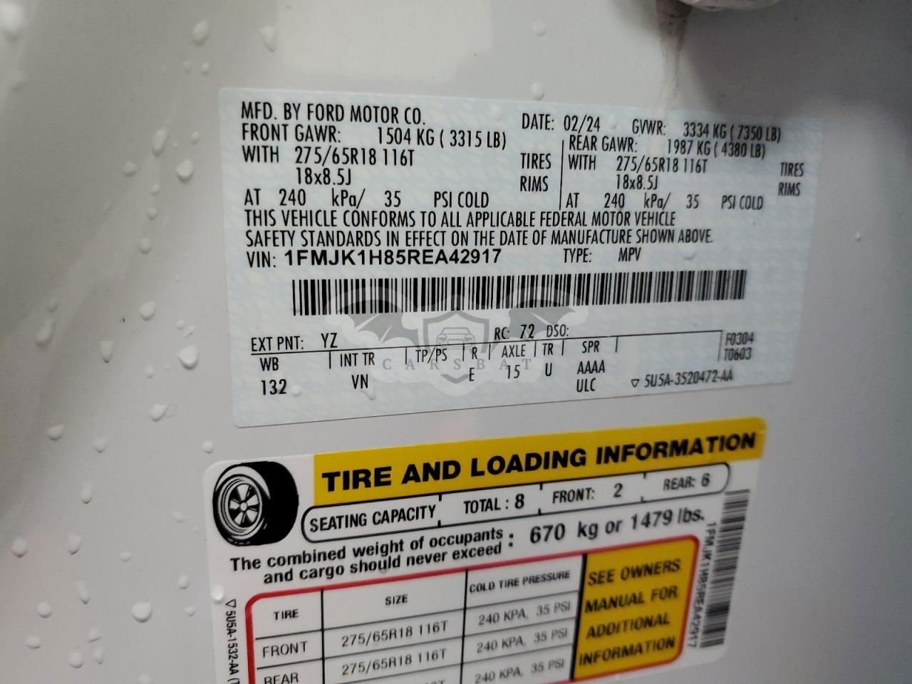 • VIN: 1FMJK1H85REA42917