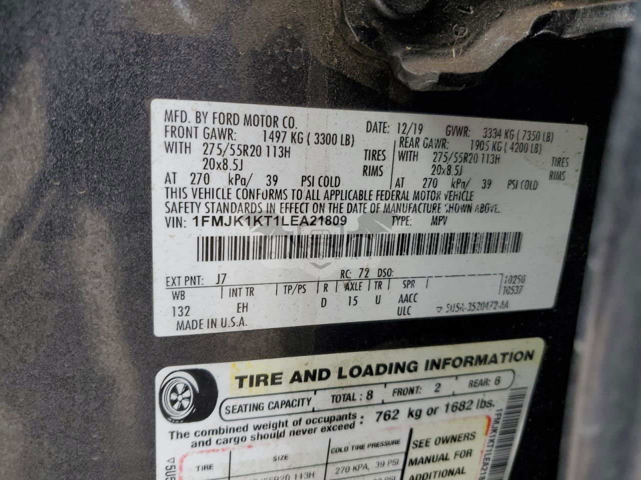• VIN: 1FMJK1KT1LEA21809