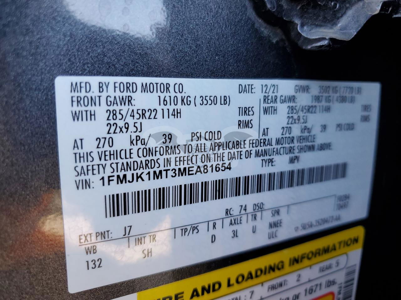 • VIN: 1FMJK1MT3MEA81654