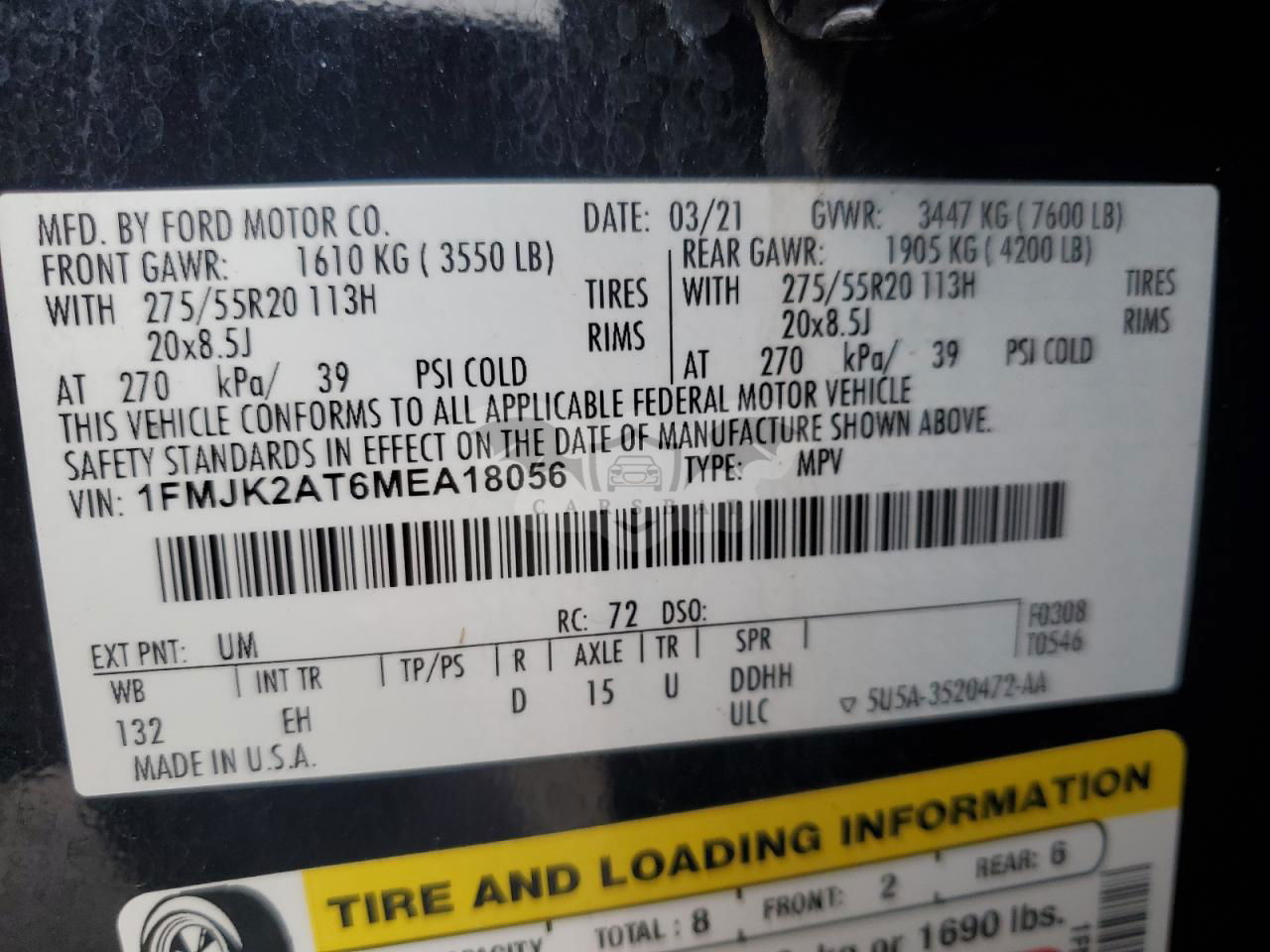 • VIN: 1FMJK2AT6MEA18056