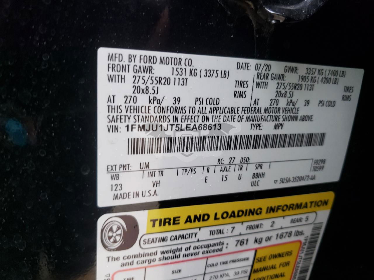 • VIN: 1FMJU1JT5LEA68613