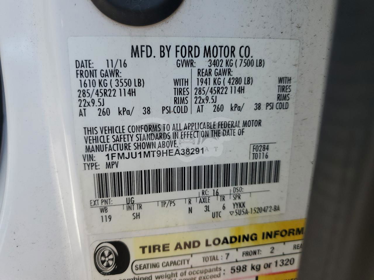 • VIN: 1FMJU1MT9HEA38291