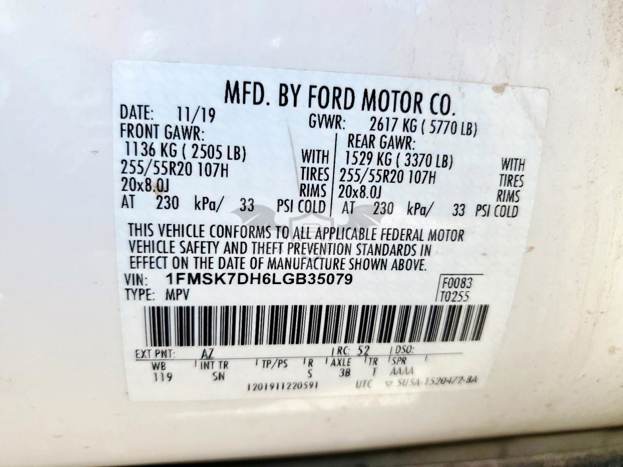 • VIN: 1FMSK7DH6LGB35079
