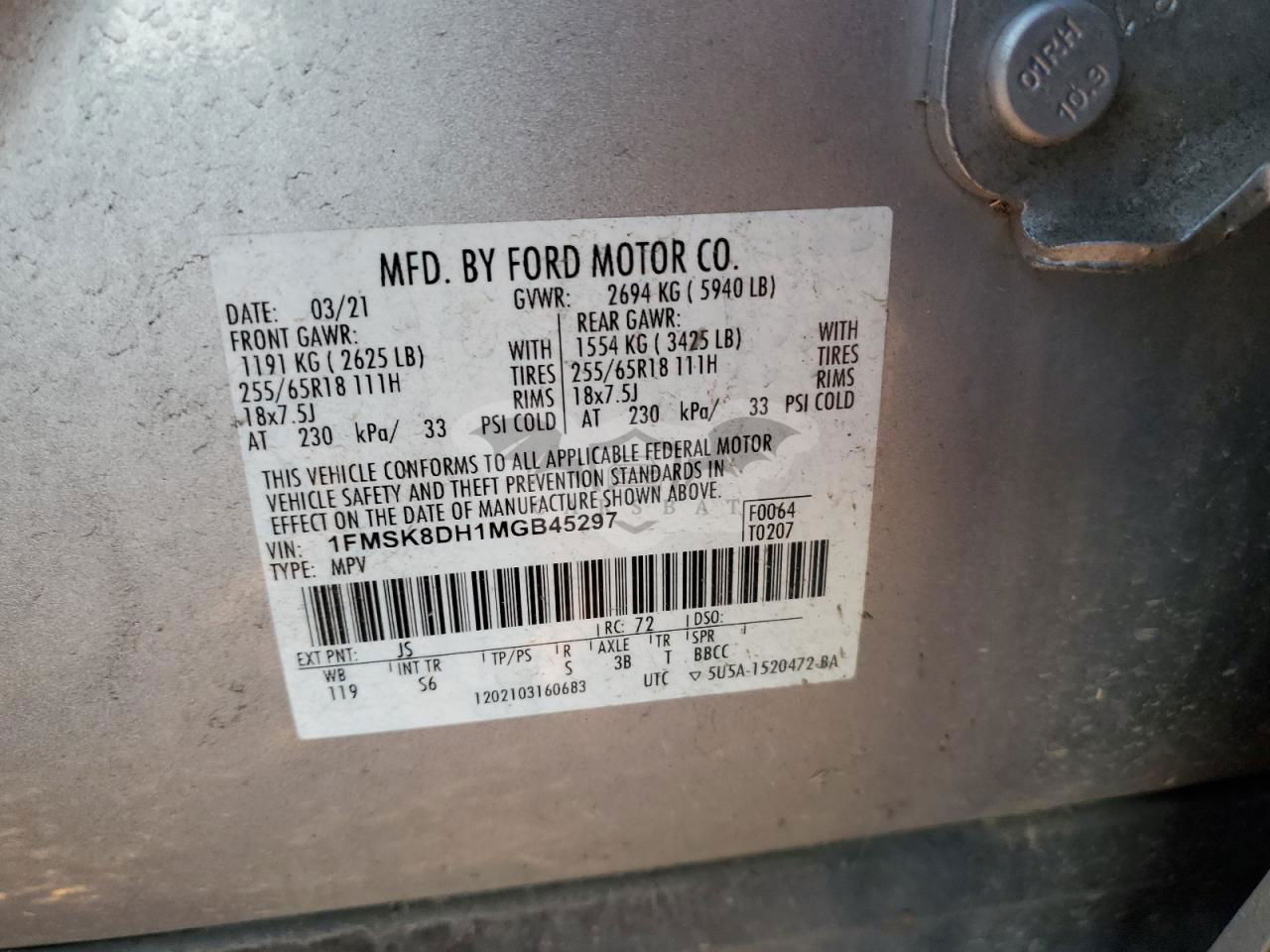 • VIN: 1FMSK8DH1MGB45297