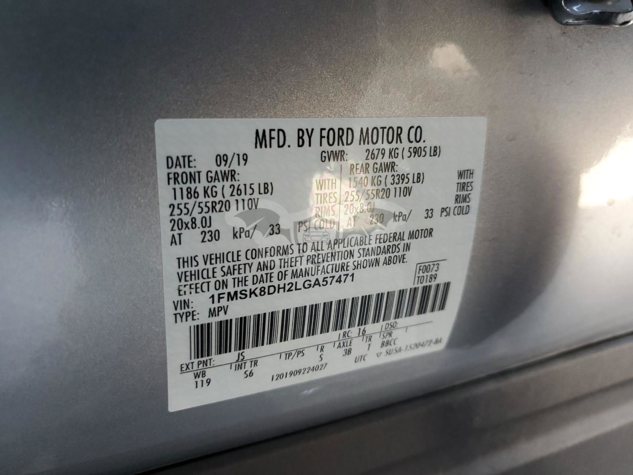 • VIN: 1FMSK8DH2LGA57471