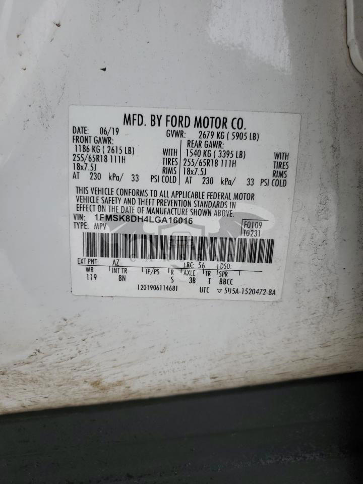 • VIN: 1FMSK8DH4LGA16016