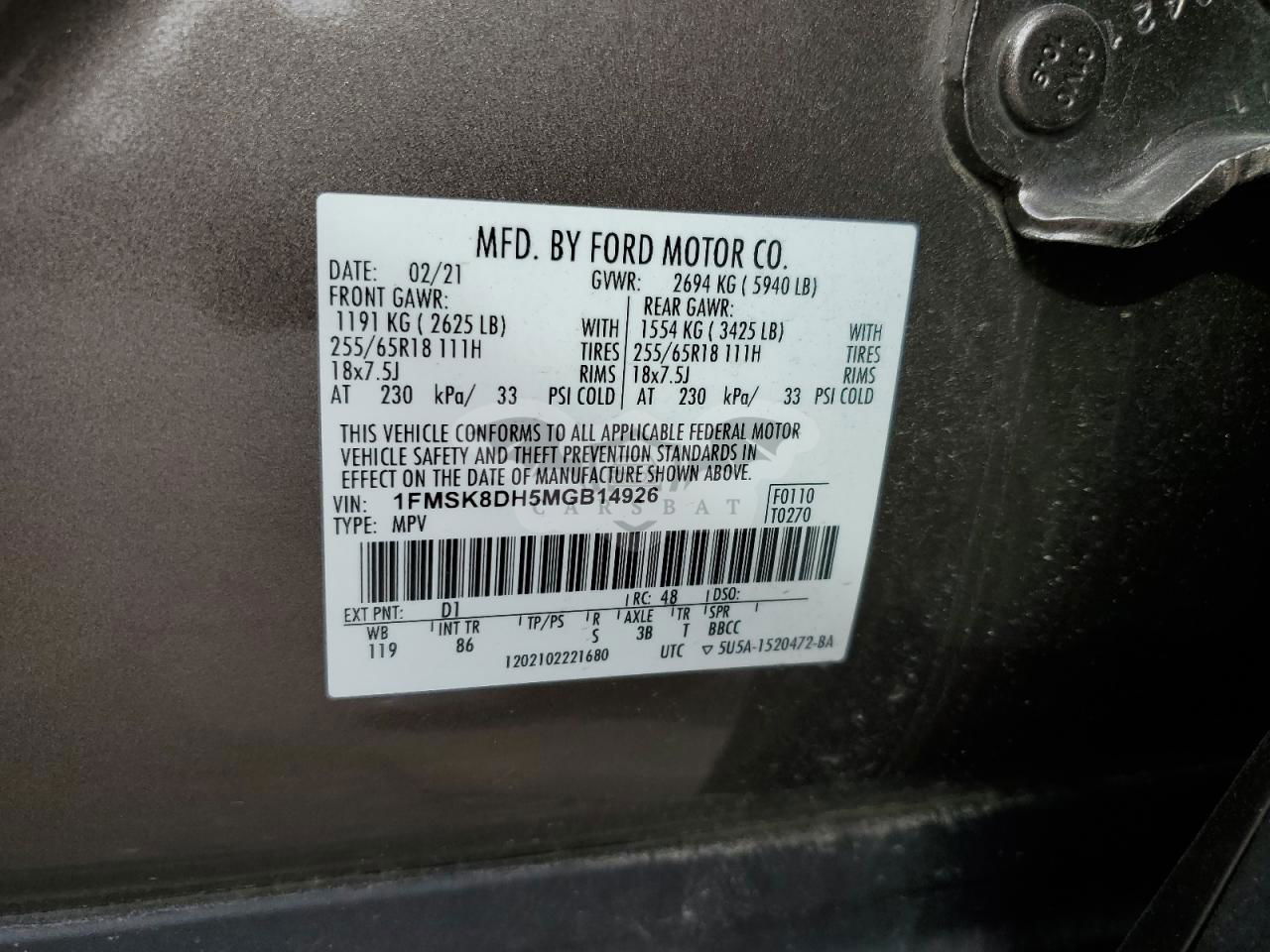 • VIN: 1FMSK8DH5MGB14926