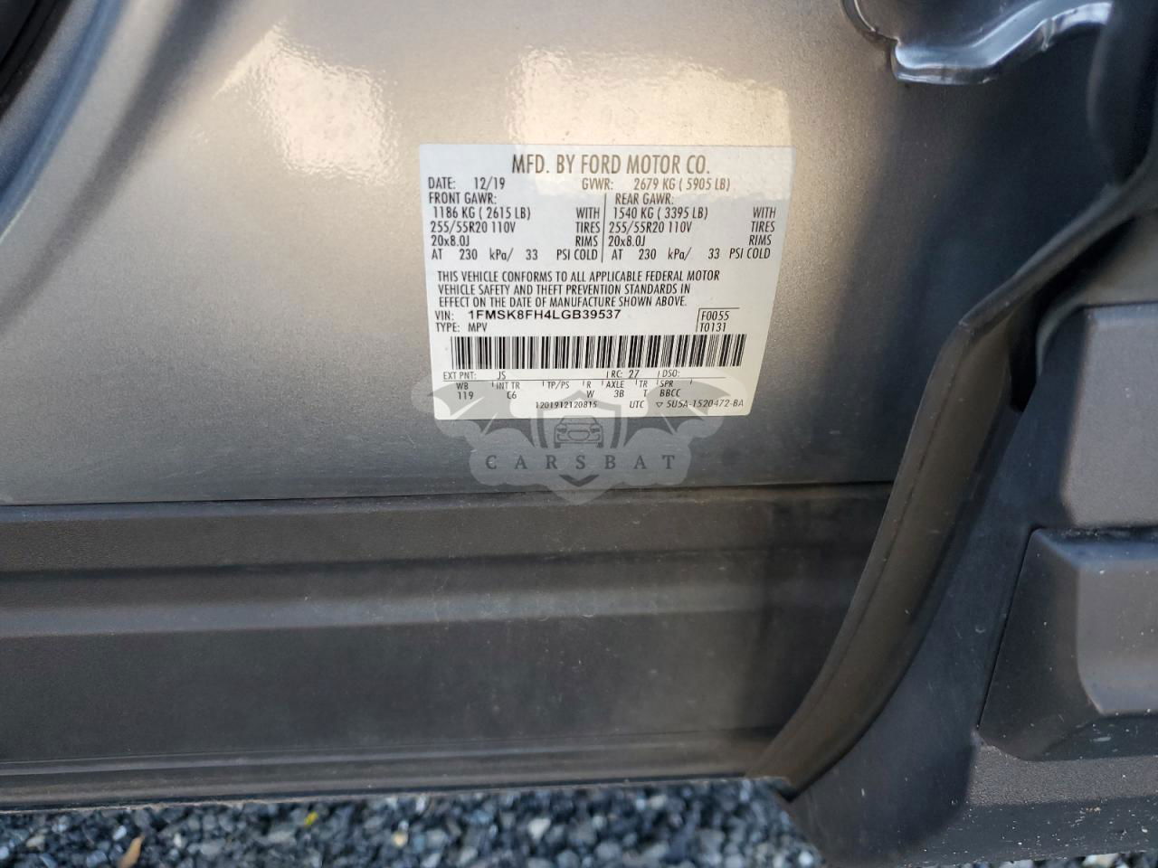 • VIN: 1FMSK8FH4LGB39537