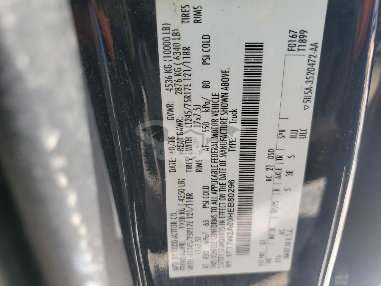 • VIN: 1FT7W2A69HEB80296