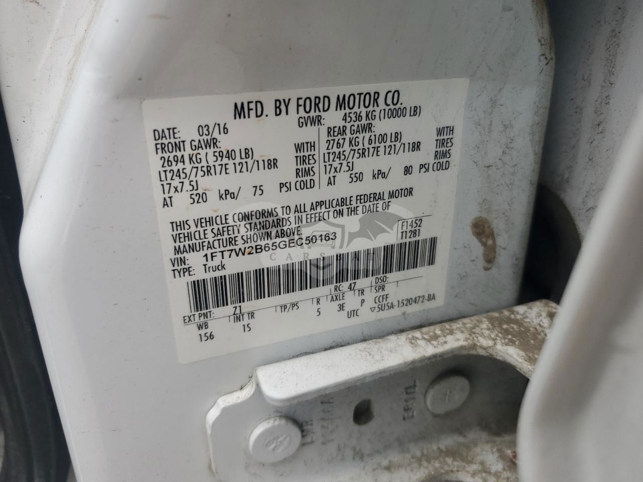 • VIN: 1FT7W2B65GEC50163