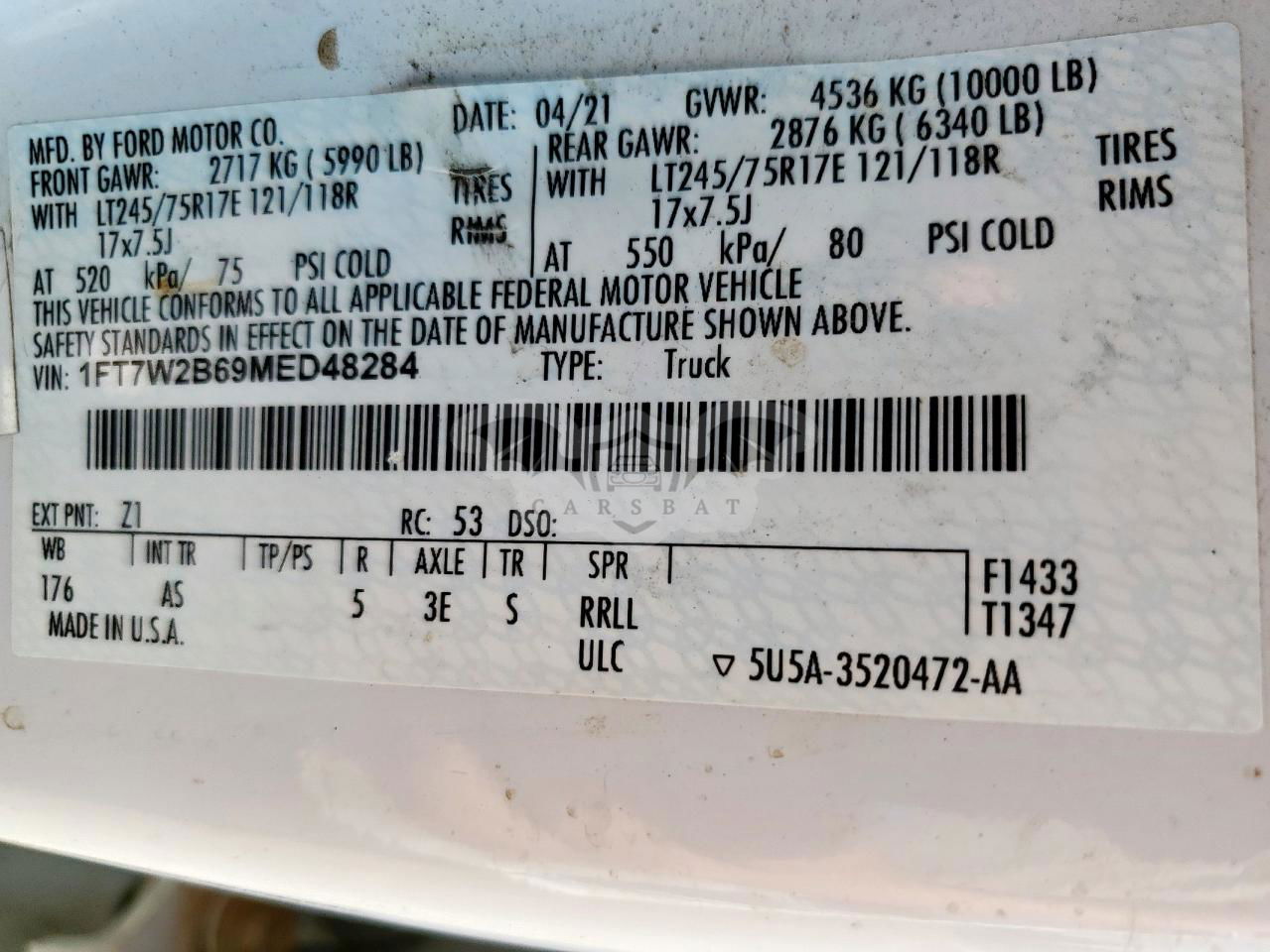 • VIN: 1FT7W2B69MED48284