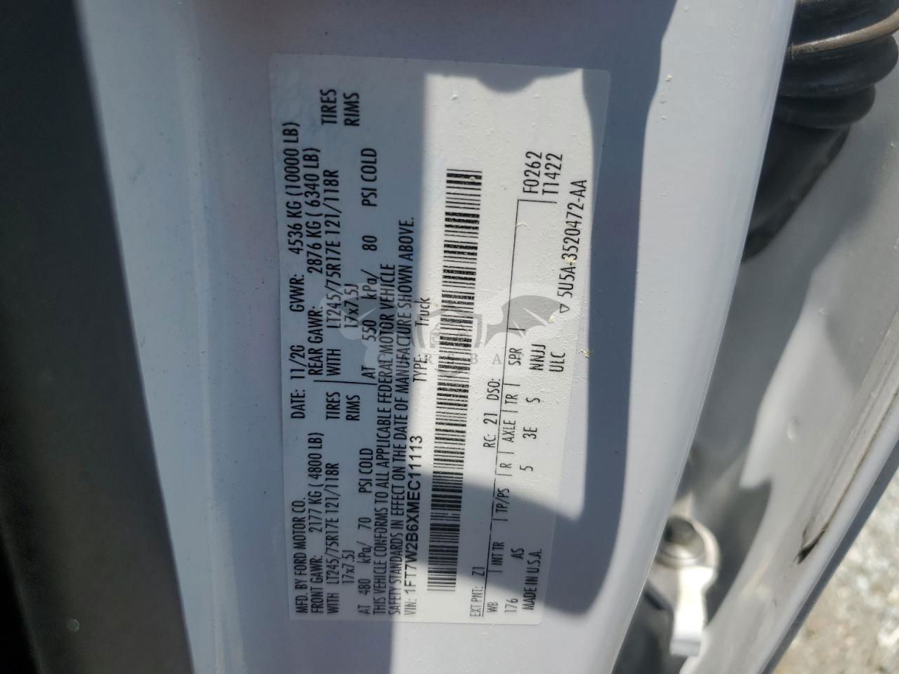 • VIN: 1FT7W2B6XMEC11113