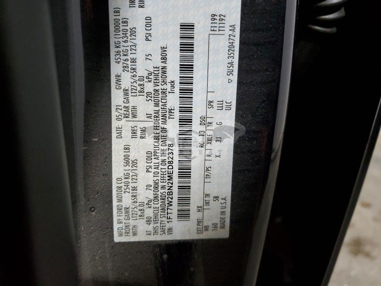 • VIN: 1FT7W2BN2MED82378
