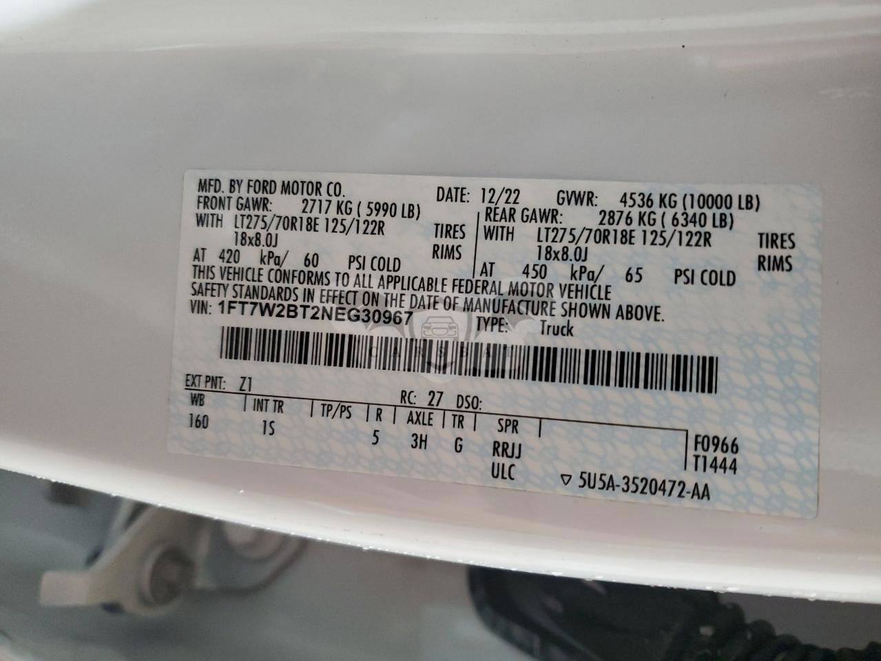 • VIN: 1FT7W2BT2NEG30967