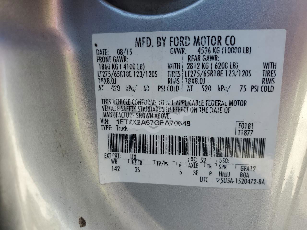 • VIN: 1FT7X2A67GEA70648