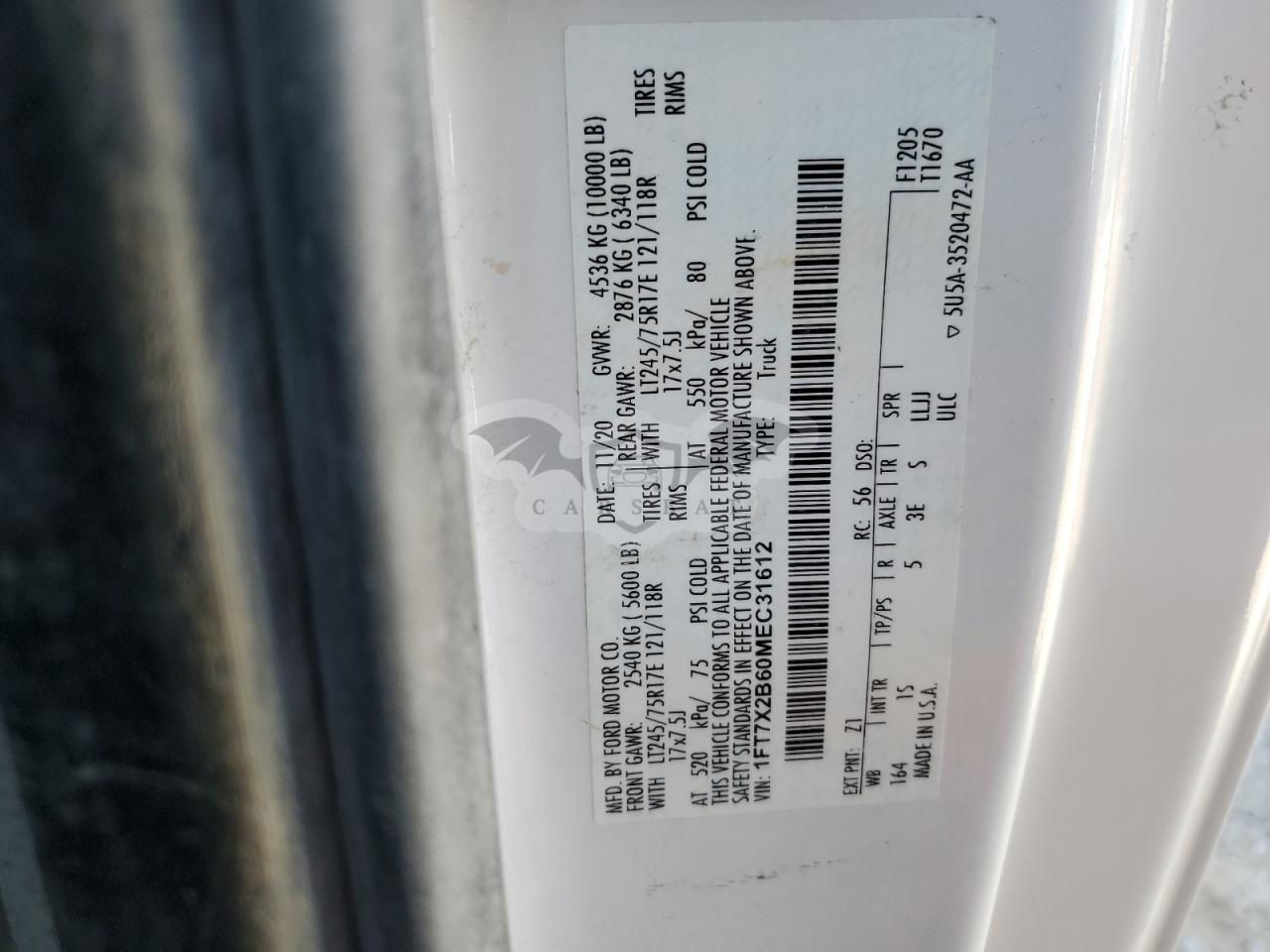 • VIN: 1FT7X2B60MEC31612