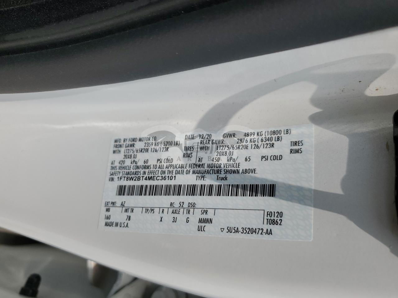 • VIN: 1FT8W2BT4MEC36101
