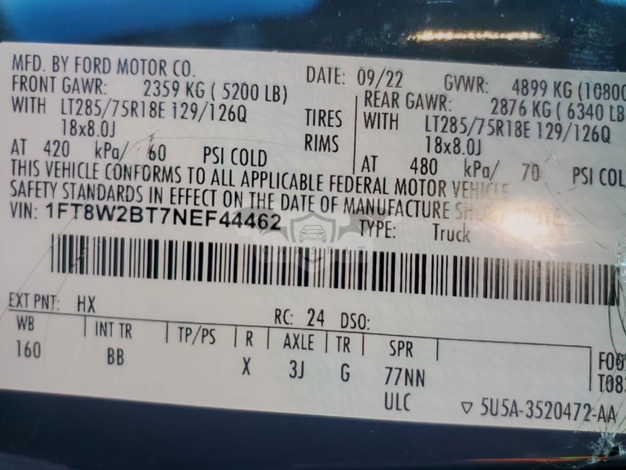 • VIN: 1FT8W2BT7NEF44462