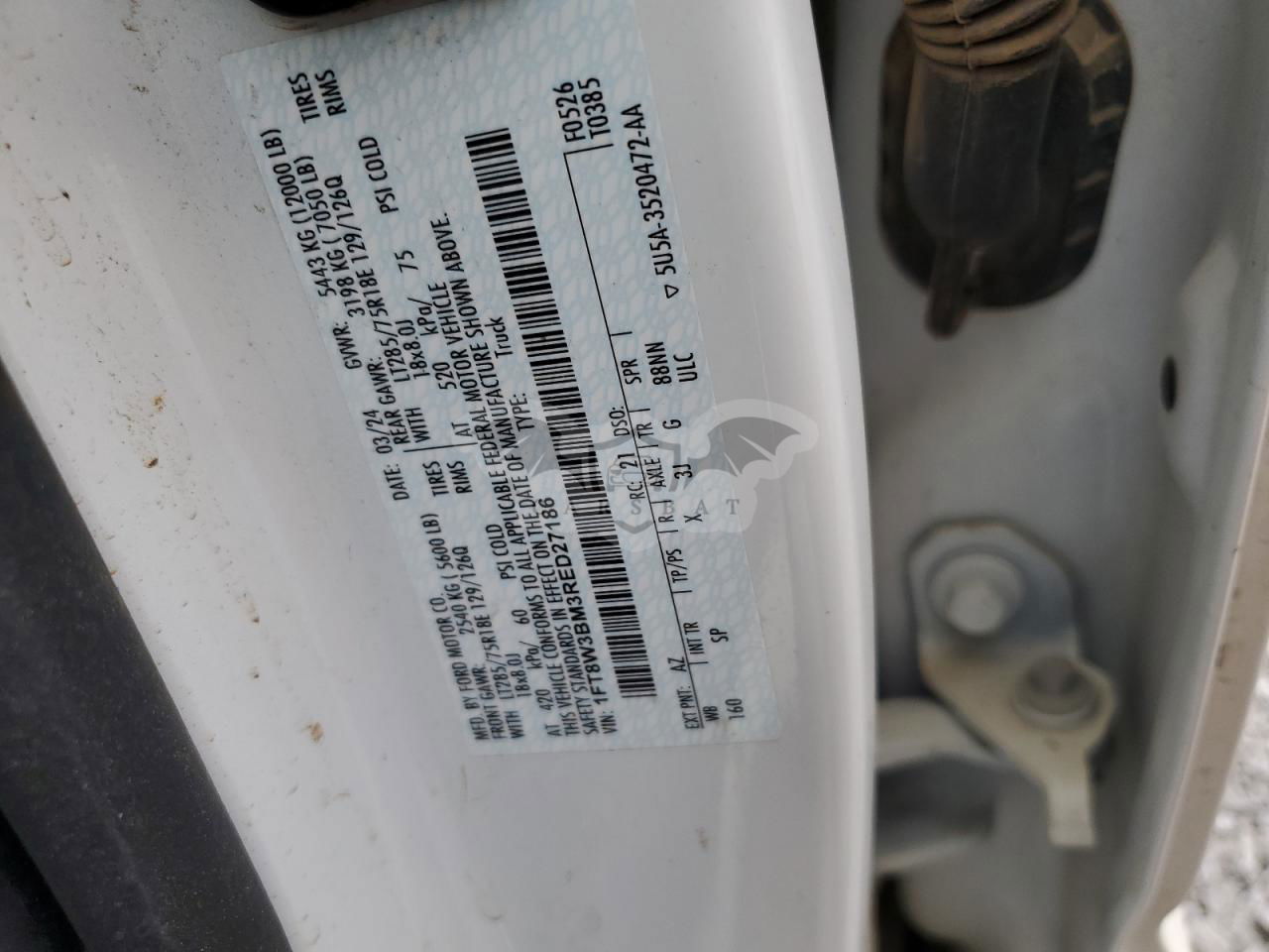 • VIN: 1FT8W3BM3RED27186