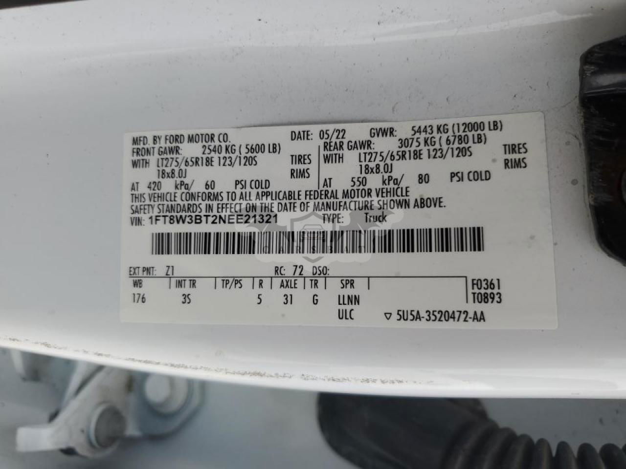• VIN: 1FT8W3BT2NEE21321