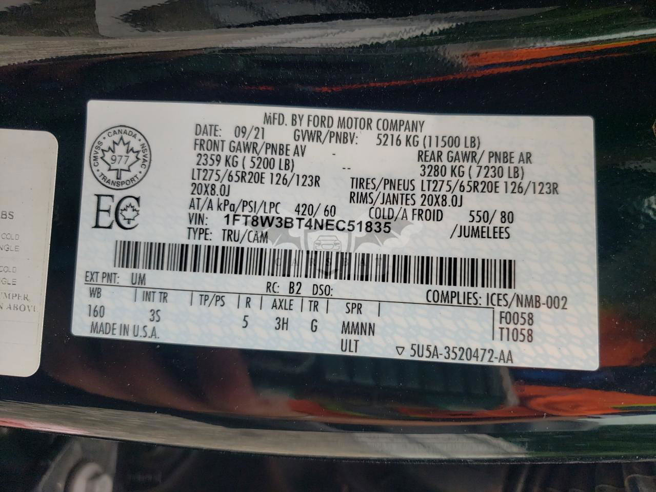 • VIN: 1FT8W3BT4NEC51835
